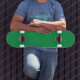 a green background with a white border skateboard