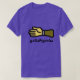 A greeting hand and Georgian text გამარჯობა under it, that can be translate to: hello. You can customise this purple t-shirt to give it you own unique look.