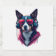A Habu dog wearing sunglasses and headphones