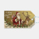 This design features a repeating Christmas pattern that looks like old-fashioned wrapping paper. It displays classic pictures of Santa Claus in his red suit standing next to a reindeer, along with large green holly wreaths tied with red ribbons that circle a snowy winter scene. The design is filled with traditional holiday details like lit candles, scrolls with greetings like "A Happy Christmas Tide," and warm colors that create a cozy and festive feeling.