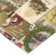 This design features a repeating Christmas pattern that looks like old-fashioned wrapping paper. It displays classic pictures of Santa Claus in his red suit standing next to a reindeer, along with large green holly wreaths tied with red ribbons that circle a snowy winter scene. The design is filled with traditional holiday details like lit candles, scrolls with greetings like "A Happy Christmas Tide," and warm colors that create a cozy and festive feeling.