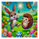 A happy hare and hedgehog, dancing Easter in the spring garden, you are looking forward to the Easter eggs that you will soon want to give away! A Digital Illustration to Easter