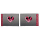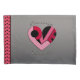 Set on a background of warm grey ombre w/a wide border of black polka dots over strawberry pink, the central medallion on this pair of Pillow Cases is an example of 'Concrete Poetry', the term describing an arrangement of letters that form a word as well as a shape relevant to that word. In this case, the shape is a romantic heart, formed by letters in 4 passionate shades of pink that spell the word LOVE. Personalise names above & below.