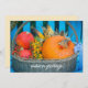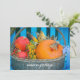 A charming autumn-themed postcard features a delightful photo capturing the essence of the season. The image showcases vibrant pumpkins, a rustic basket filled with colourful corn and berries, all set against a picturesque blue backdrop. Perfect to send warm greetings to your loved ones, this postcard embodies the cosy and inviting atmosphere of the autumn countryside.