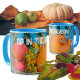 Embrace the cosy vibes of the season as you enjoy your morning coffee or herbal tea in this delightful mug. Adorned with a picturesque still life of pumpkins, corn, and berries nestled in a rustic basket, it effortlessly adds a touch of the harvest season to any setting. Bring the beauty of autumn right to your fingertips or gift it to someone special who appreciates seasonal decor.