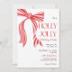 A holly jolly Pink Red Coquette Bow christmas Invitation