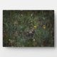A Horned Lark hunting for insects and grubs in a meadow of wildflowers.