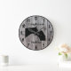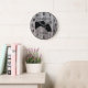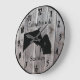 Personalise this custom barnwood styled clock with your farm, ranch, or stable name to add a personal touch to the decor. Barnwood look clock face with horse and owner showing affection silhouette in centre. Choose one of two sizes and two colours of clock hand, whichever is to your liking.