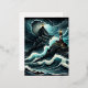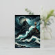 A huge ship crests a massive wave, its prow high i foil holiday postcard