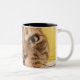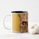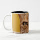 A humourous little cat sits on a stool Two-Tone coffee mug