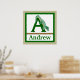 Whimsical wall art for your child's room. Image is of your child's Initial with an animal that also starts with the same letter. Customise with your child's name.