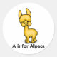 A is for Alpaca Classic Round Sticker