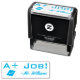 This inspirational rubber stamp design features the encouraging feedback message "A+ Job!" and a customised educator name. It could be used by a teacher, educator, instructor, or tutor when marking assignments, to acknowledge that the student has done well.