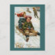 Beautiful vintage Christmas card showing two children sliding down a snowy slope on their sled. Other children are playing in the background.