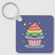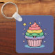A Kawaii giggling cupcake with rainbow frosting an Key Ring