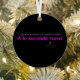 People who regularly watch competitive dance in the lyrical, musical theatre, and jazz dance categories are MOST LIKELY to be familiar with a la seconde turns. The proper French term for them is grandes pirouettes a la seconde en dehors, or - as the International Gymnastics Federation puts it on its Rhythmic Gymnastics Code of Points - fouettes with legs in horizontal! This round metal ornament features a black background and pink text. Simply type the studio or school name (up to 3 lines) and the year on back!