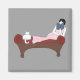 An Art Deco era lady lounges reading a book on an antique-style red upholstered daybed in the mixed media image on this magnet. The flapper girl wears a slinky pink negligee and she has finger curls in her shiny black hair. At her feet sits a quite contented big, white cat. From my original digitally created image, this design will appeal to cat lovers, book lovers and vintage fans alike!
