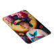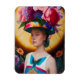 A lady with a floral sun hat magnet