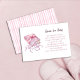 This beautiful baby shower enclosure card for books features pink watercolor ballet shoes resting on top of a book on the front, with soft pink watercolor stripes on the back. This charming card is part of the Ballet Shoes and Roses baby shower suite.
