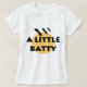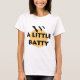 Black bats flying over a yellow moon with the words A Little Batty. Funny Halloween bat design.