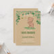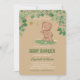 Cute baby shower gender neutral invitation card featuring a little bear cub chasing a bee. The text on top says 'There's a little cub on the way', surrounded by leaves. Personalise it with adding name and party information to this bear theme invitation.