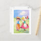 A Little Bit Shy Postcard. This postcard is decorated with a watercolor painting of a Dutch girl and boy at their first meeting.
