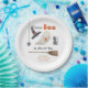 Featuring cute watercolor of baby ghost and Halloween aesthetics. A little boo is almost due! Halloween themed baby shower with watercolor ghost, black cat, witch's hat, magic mop ( broomstick ), spider hanging from a web. The little ghost is eating a lollipop.