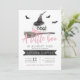 A watercolor witches hat and sweet white and pink pumpkin will make you love this halloween baby shower invitation. "A Little Boo is Almost Due" is spelled out in whimsical lettering. Add your rsvp information at the bottom. Reverse side of card is orange to match the front.
