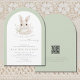 Celebrate the upcoming arrival of a sweet baby with this charming A Little Bunny Is on the Way baby shower invitation. Featuring a hand-painted watercolor bunny nestled among delicate florals, this design exudes softness and elegance. The arched frame and sage green hues create a timeless, sophisticated look. Personalise with your event details, and make gift-giving effortless with a QR code on the back linking directly to the baby registry. A beautiful and convenient way to invite loved ones to share in this special moment! Design by Anna Szalacha © Happy Ann Designs.