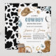 WILD WEST RODEO (BLUE) - This adorable South Western, Rodeo Cowprint, Cowboy Boy birthday invitation is fully editable, can be printed and mailed out or the birthday evite can be shared via email and social media! This Cowboy Birthday Invitation showcases a pair of Cowboy Boots & Cowboy Hat, Lasso, Cactus, a blue bandanna and other western artwork surrounded by black cowprint. Also included is an optional cowprint backside. This Wild West Rodeo, Baby Shower Invitation is sure to complete any Western Themed baby shower, gender reveal, or other cowboy themed event! By using the easy to use Zazzle software (no download necessary) right in your browser, you simply purchase and personalise all in the same place. It's as easy as that!