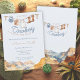 Round up your loved ones for an all around good time with this charming "A Little Cowboy is On The Way" baby shower invitation! This beautifully designed invitation captures the rustic charm of the Wild West, perfect for welcoming your little buckaroo. There is lasso clothesline fun hung with a denim sheriff baby bodysuit, cowboy boots, cowboy hat, and a bandanna that doubles as a bib. A watercolor western canyon backdrop sets the scene on the front and back of the card. Its unique, watercolor style and playful details will get everyone excited to celebrate your new little cowboy!
