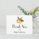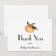 Thank your guests for celebrating the mama to be! This thank you postcard features watercolor illustrations of a clementine orange to match our baby shower invitation. Personalise with your information or click "Click to customise further" to edit font styles, size and colours.