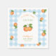Celebrate the sweetest news with our Little Cutie Is on the Way baby shower paper napkins! This charming design features a playful blue gingham background paired with bright oranges and cheerful citrus accents for a fresh, sunny look that’s perfect for welcoming a new baby. The adorable little cutie theme adds a fun, modern twist that guests will instantly love, making your shower feel warm, joyful, and unforgettable from the moment they open the invite. Perfect for spring and summer celebrations, this invitation blends classic patterns with vibrant fruit illustrations to create a look that’s both timeless and trendy. Whether you’re planning a cozy brunch, garden party, or citrus-inspired shower, this design sets the tone for a celebration full of sweetness and smiles. Complete your party style by shopping the rest of the Little Cutie collection! From matching decorations to coordinating games and signage, you’ll find everything you need to create a beautifully cohesive baby shower theme your guests will adore.