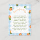Celebrate the sweetest news with our Little Cutie Is on the Way baby shower books for baby enclosure card! This charming design features a playful blue gingham background paired with bright oranges and cheerful citrus accents for a fresh, sunny look that’s perfect for welcoming a new baby. The adorable little cutie theme adds a fun, modern twist that guests will instantly love, making your shower feel warm, joyful, and unforgettable from the moment they open the invite. Perfect for spring and summer celebrations, this invitation blends classic patterns with vibrant fruit illustrations to create a look that’s both timeless and trendy. Whether you’re planning a cozy brunch, garden party, or citrus-inspired shower, this design sets the tone for a celebration full of sweetness and smiles. Complete your party style by shopping the rest of the Little Cutie collection! From matching decorations to coordinating games and signage, you’ll find everything you need to create a beautifully cohesive baby shower theme your guests will adore.