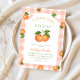 Celebrate the sweetest news with our Little Cutie Is on the Way baby shower invitation! This charming design features a playful peachy pink gingham background paired with bright oranges and cheerful citrus accents for a fresh, sunny look that’s perfect for welcoming a new baby. The adorable little cutie theme adds a fun, modern twist that guests will instantly love, making your shower feel warm, joyful, and unforgettable from the moment they open the invite. Perfect for spring and summer celebrations, this invitation blends classic patterns with vibrant fruit illustrations to create a look that’s both timeless and trendy. Whether you’re planning a cozy brunch, garden party, or citrus-inspired shower, this design sets the tone for a celebration full of sweetness and smiles. Complete your party style by shopping the rest of the Little Cutie collection! From matching decorations to coordinating games and signage, you’ll find everything you need to create a beautifully cohesive baby shower theme your guests will adore.