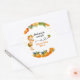 adorable cute little cutie orange theme baby shower party favour stickers for girl. Vibrant oranges with cute little baby dressed in orange themed outfit.
