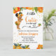 adorable cute African American little cutie orange theme baby shower invitation for girl. Vibrant oranges with cute little baby dressed in orange themed outfit.