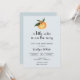 A little cutie is on the way! Send this adorable baby shower invitation to loved ones. Invitation features a watercolor, hand-painted clementine orange on a blue background. Personalise with your baby shower wording to celebrate the mummy to be.