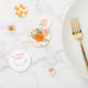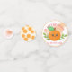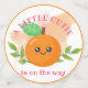 A little cutie is on the way, This is part of an adorable collection featuring many different designs with oranges, flowers, and trees. This is perfect for a baby shower for either a boy or a girl.