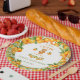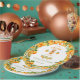 A Little Cutie is on the Way theme with a watercolor teddy bear in coordinating orange outfit. Simply adorable. Oranges with greenery were used to create a sweet frame for this baby boy or girl baby shower paper plate. Find coordinating baby shower invitation, as well as “A Little Cutie is on the Way” gift wrap, napkins and other items for the perfect baby shower theme.