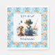 Baby Shower napkins. An adorable sweet little ai watercolor illustration of a baby boy fishing with a puppy dog. The colours of this invitations include blue and orange. Cute fish swimming around in the background.