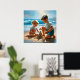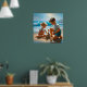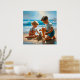 A Little Girl and Boy Building a Sandcastle Poster
