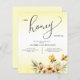 The A Little Honey Bee Baby Shower Invitation is a sweet and charming way to celebrate the mum-to-be. Featuring adorable honey bee accents with soft yellow and black details, it sets the perfect theme for a buzzing celebration. The playful “A Little Honey Bee” phrase adds a whimsical touch that guests will love. Printed on high-quality cardstock, it ensures durability and a polished look. The clean layout provides ample space to share important details like the date, time, and location. Its cheerful design pairs beautifully with rustic, garden, or nature-inspired baby showers. Perfect for both indoor and outdoor gatherings, it creates a warm and inviting feel. A delightful invitation that sets the tone for a joyful and memorable baby shower.
