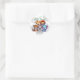 Cute zoo animal jungle themed baby shower sticker. Adorable cartoon elephant, giraffe, lion, tiger and giraffe with pretty watercolor green foliage. This can be for a boy, girl's or a gender neutral baby shower. A Little Peanut is on it's way.
