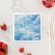 A little piece of heaven sent baby shower napkins. This is an editable and printable cloudy napkin template. Featuring beautiful Graphics of blue sky elegant script and calligraphy. The design showcases delicate and pastel watercolor illustrations.