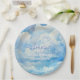 A little piece of heaven sent baby shower plates. This is an editable and printable cloudy plate template. Featuring beautiful Graphics of blue sky elegant script and calligraphy. The design showcases delicate and pastel watercolor illustrations.