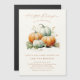An elegant gender neutral fall baby shower magnetic invitation with modern script Little Pumpkin and editable on the way text. It features hand-painted watercolor pumpkins in shades of orange and green. Click the edit button to customise with your details.