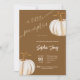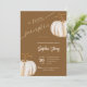 his elegant and minimalist design features charming white pumpkins, warm brown tones, and subtle rustic accents that beautifully capture the cosiness of the season. This invitation is available as a digital download, making it an eco-friendly and convenient choice. Customise it with your event details, and print it instantly from the comfort of your home or at your favourite print shop. Ideal for fall-themed and boho baby showers, this printable design adds a touch of elegance to your special day