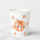 A Little Pumpkin Watercolor Halloween Fall Paper Cups, feature with the word " Our Little Pumpkin" design modern, minimal orange watercolor pumpkin and fall leaves, perfect for Halloween, Fall Baby shower, baby expected in Fall.