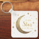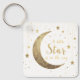 Celebrate your little star with a keepsake that guests can carry with them every day. This square keychain features a shimmering gold crescent moon and dangling stars, paired with the heartfelt phrase “A Little Star Is on the Way.”